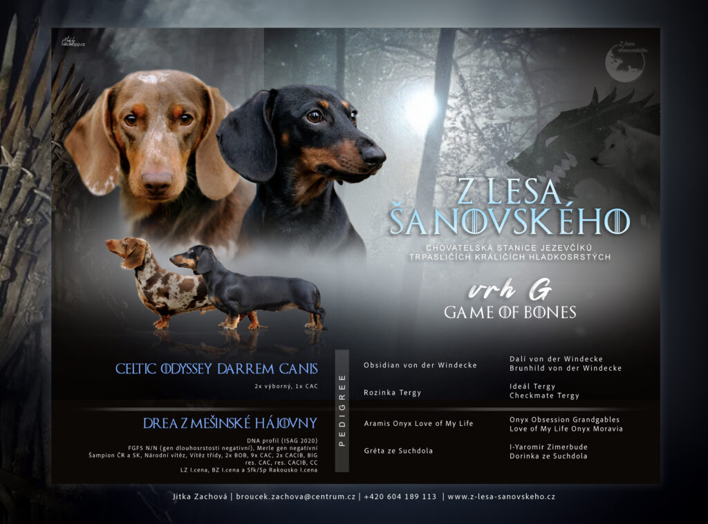 Jsme malá chovatelská stanice z východu Moravy, založena v roce 2019. Naši psi bez výjimky s námi žijí v RD, tudíž jsou plnohodnotnými členy naší domácnosti a rodiny. Do naší psí smečky patřily mimo jiné fena hannoverského barváře Dafy z Rožnovských pasek,která nás náhle opustila v prosinci 2020. A také fena yorkšírského teriéra Enie,která nás opustila v červenci 2022 v nádherném věku 15 ti let. Byly obě našimi plnohodnotnými parťáky při lovu a toulkami lesem a obě toho spoustu naučily nejen nás,ale hlavně naši zakladatelku chovu jezevčíků Elinku.